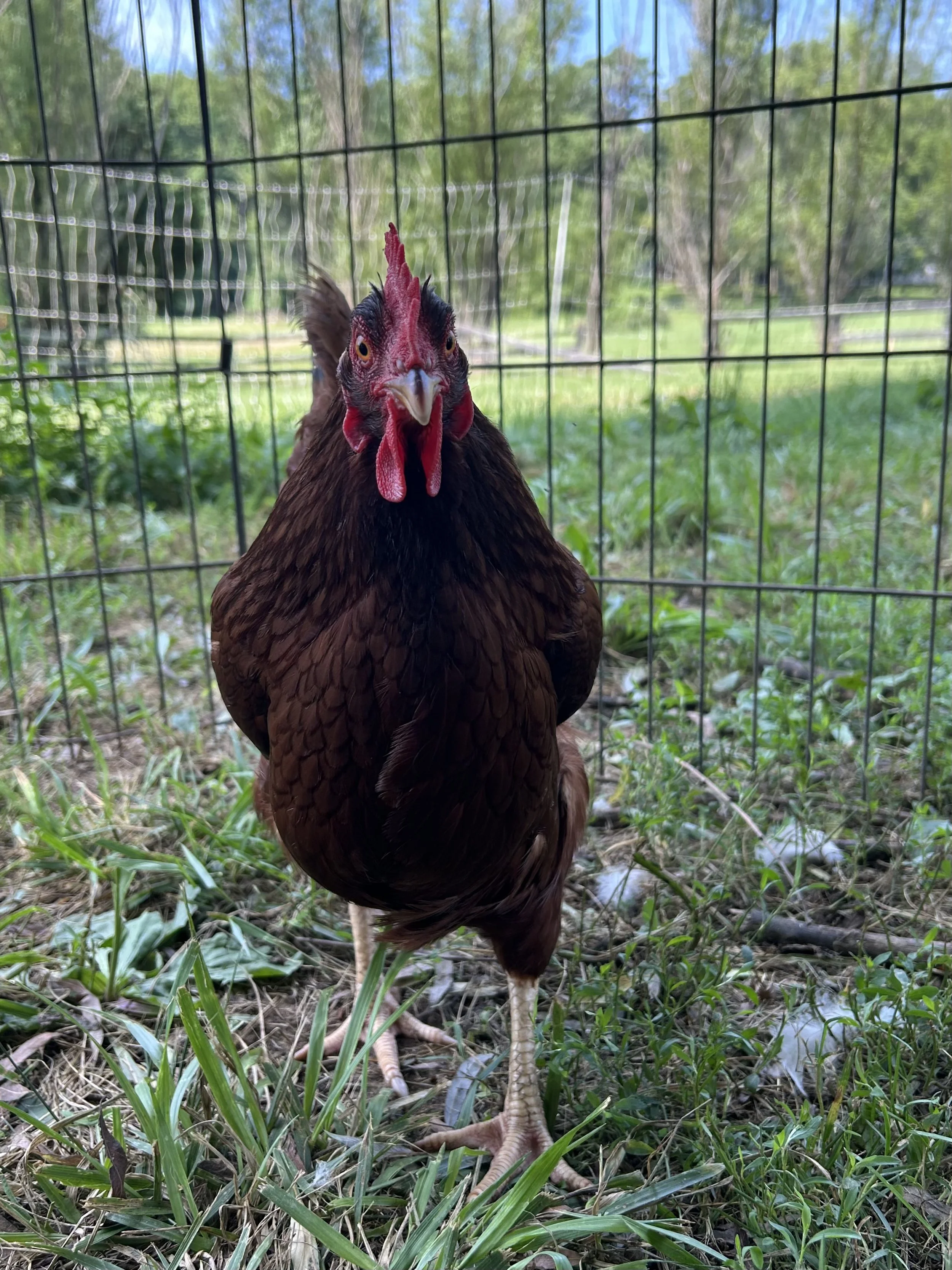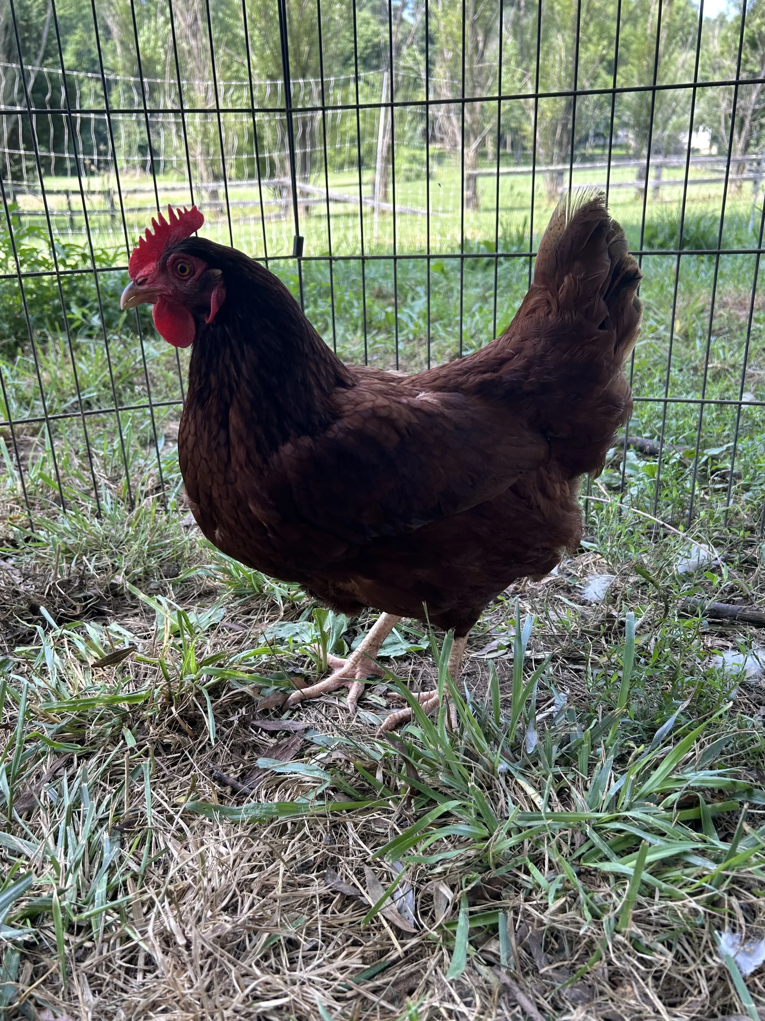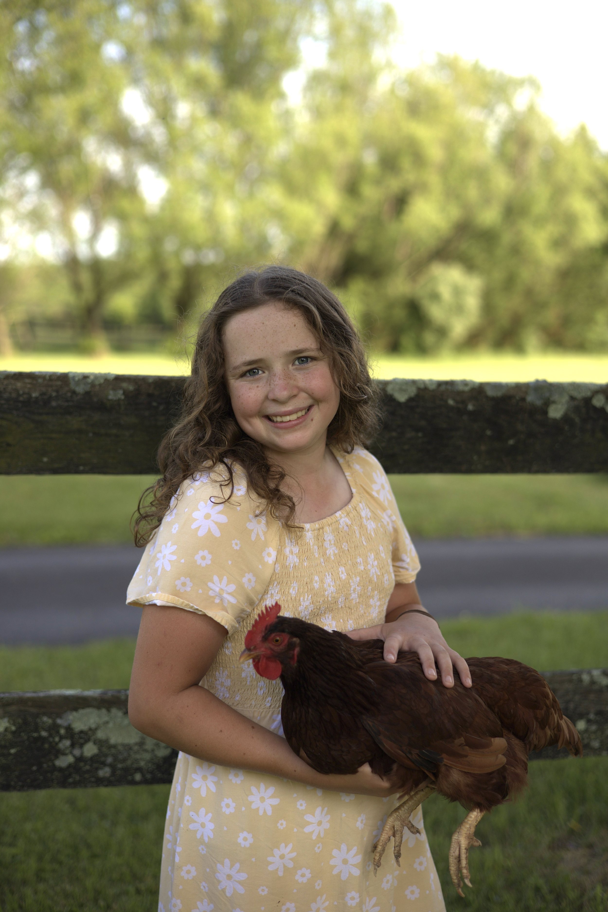 This is my chicken, which is a Rhode Island Red hen. She is a pretty good egg layer and her name is Ruby. Thank you for your support! Please come to the auction on July 25th at the Loudoun County Fair. Learn more about the Loudoun County Fair auction here.